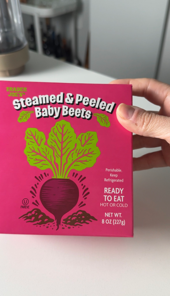I love using the pre-cooked beets from Trader Joe’s for convenience. They’re tender, naturally sweet, and ready to blend straight from the package.