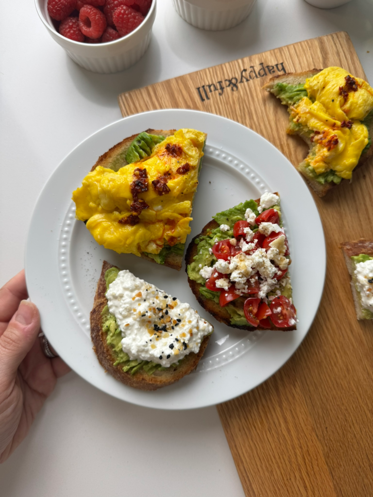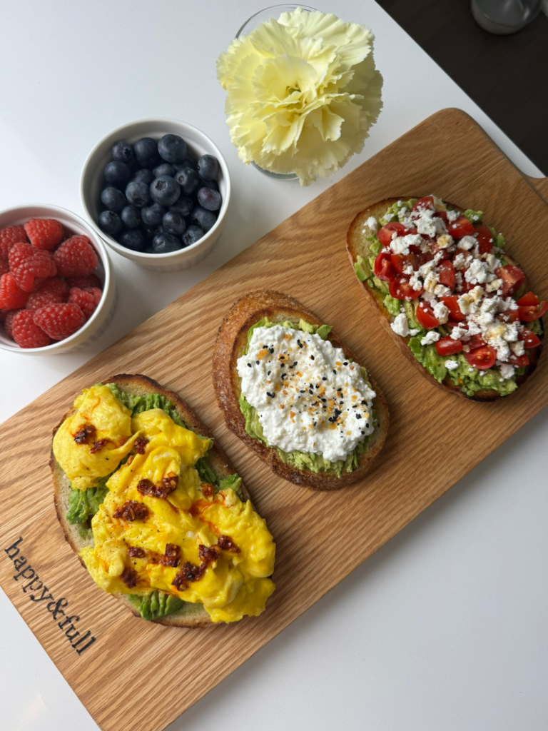 If you’re making this avocado toast 3 ways flight for the mom in your life, plate the three toasts on a wooden board or platter with a side of fresh berries, a hot coffee in her favorite mug, and a tall glass of water. Bring it to her with no expectations. Five quiet minutes, three perfect bites, the morning starts the way it should.