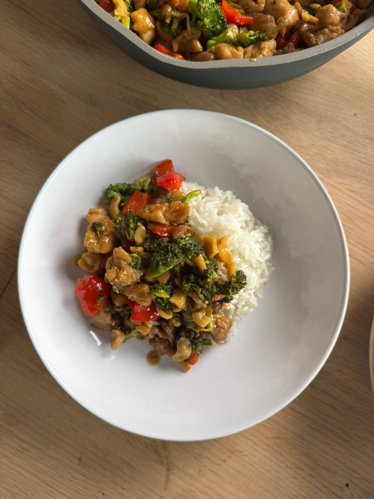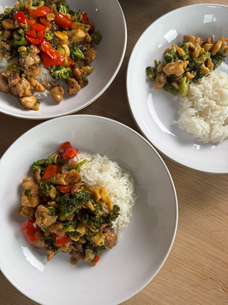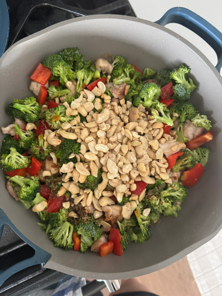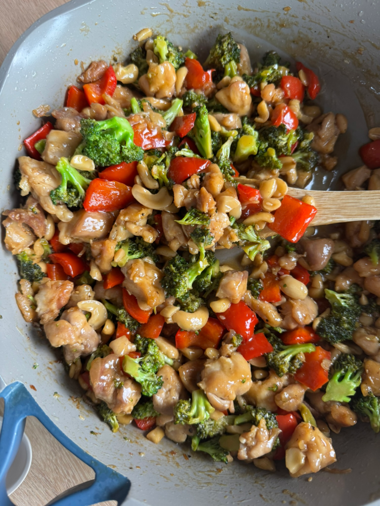 If you have a nut allergy, you can omit the cashews and just have this meal as a simple chicken stir fry! Same good flavour.