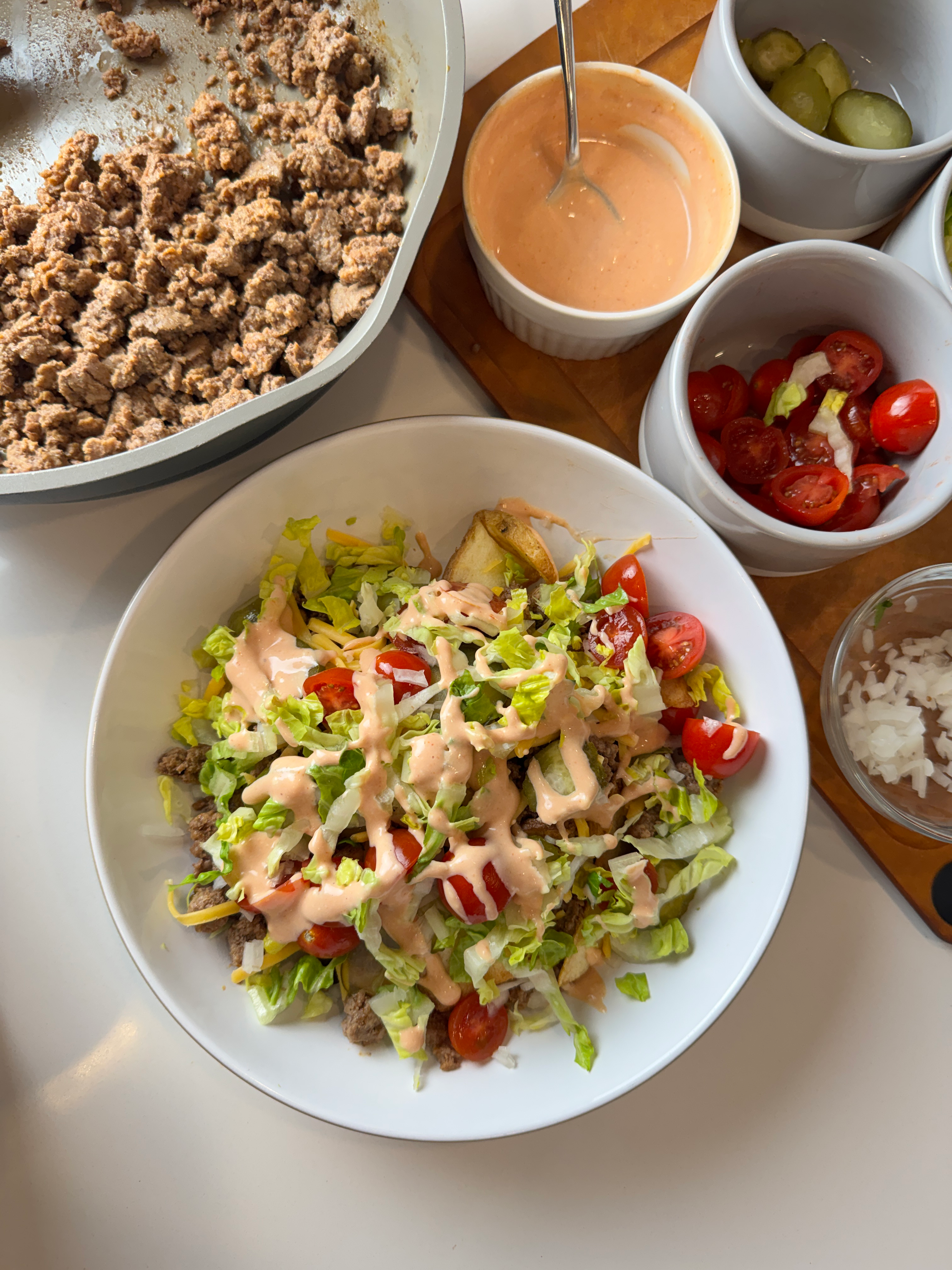 These Potato Wedge Burger Bowls are the ultimate comfort meal made simple. Whether you go the shortcut route with frozen wedges or make your own from scratch, you’ll end up with a crave-worthy bowl that hits every note—crispy, savory, fresh, and saucy. Perfect for weeknights, weekend cravings, or even your next viral food moment—because let’s be honest, burger bowls just look as good as they taste.