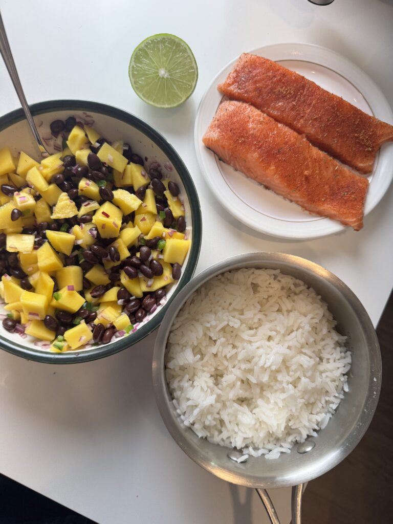 Prepare the rice and salmon ahead of time and make the mango salsa the day you plan to eat it so it stays fresh and vibrant.