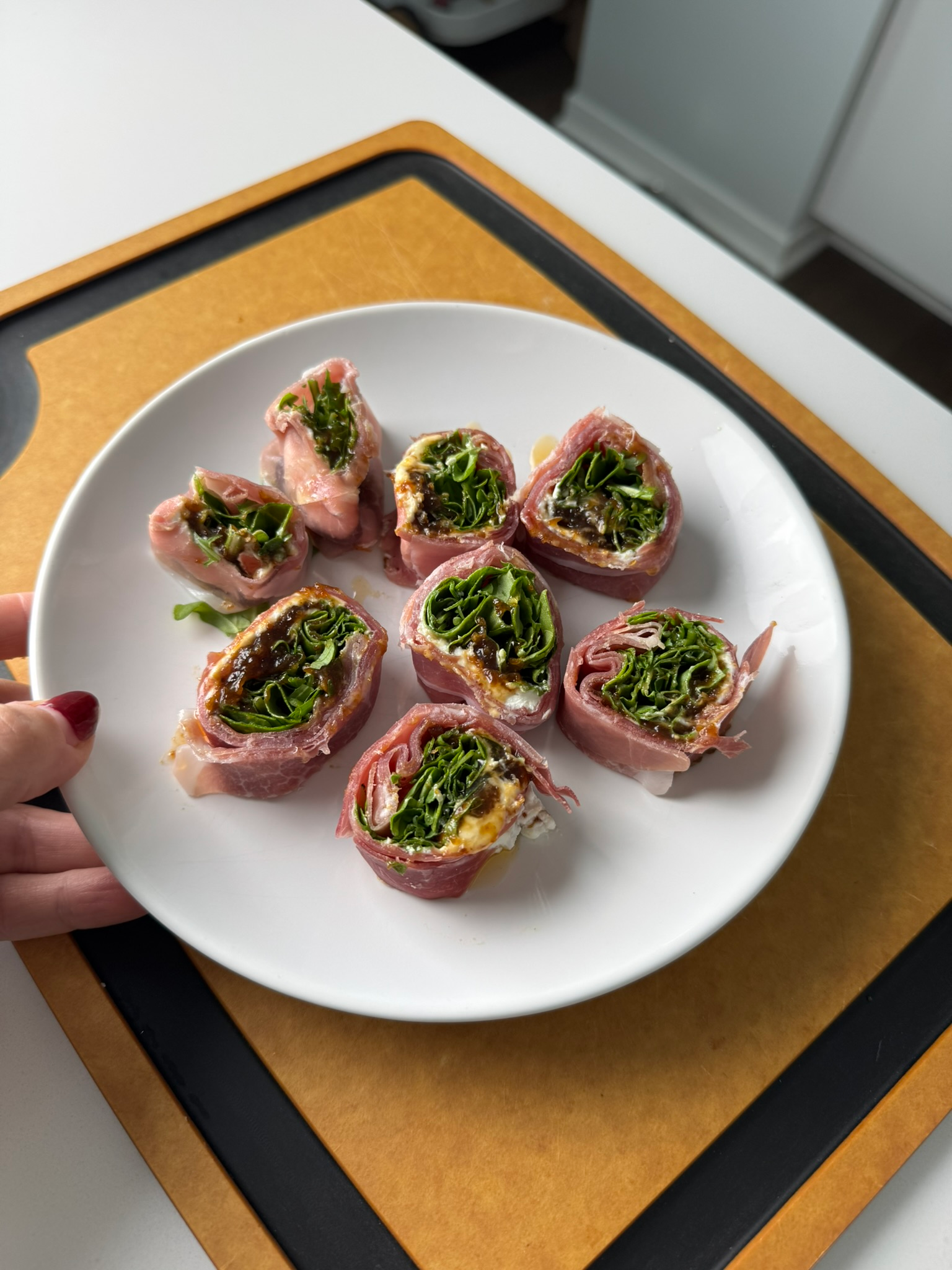 - Overlapping the prosciutto is key—it prevents tearing and keeps the roll intact