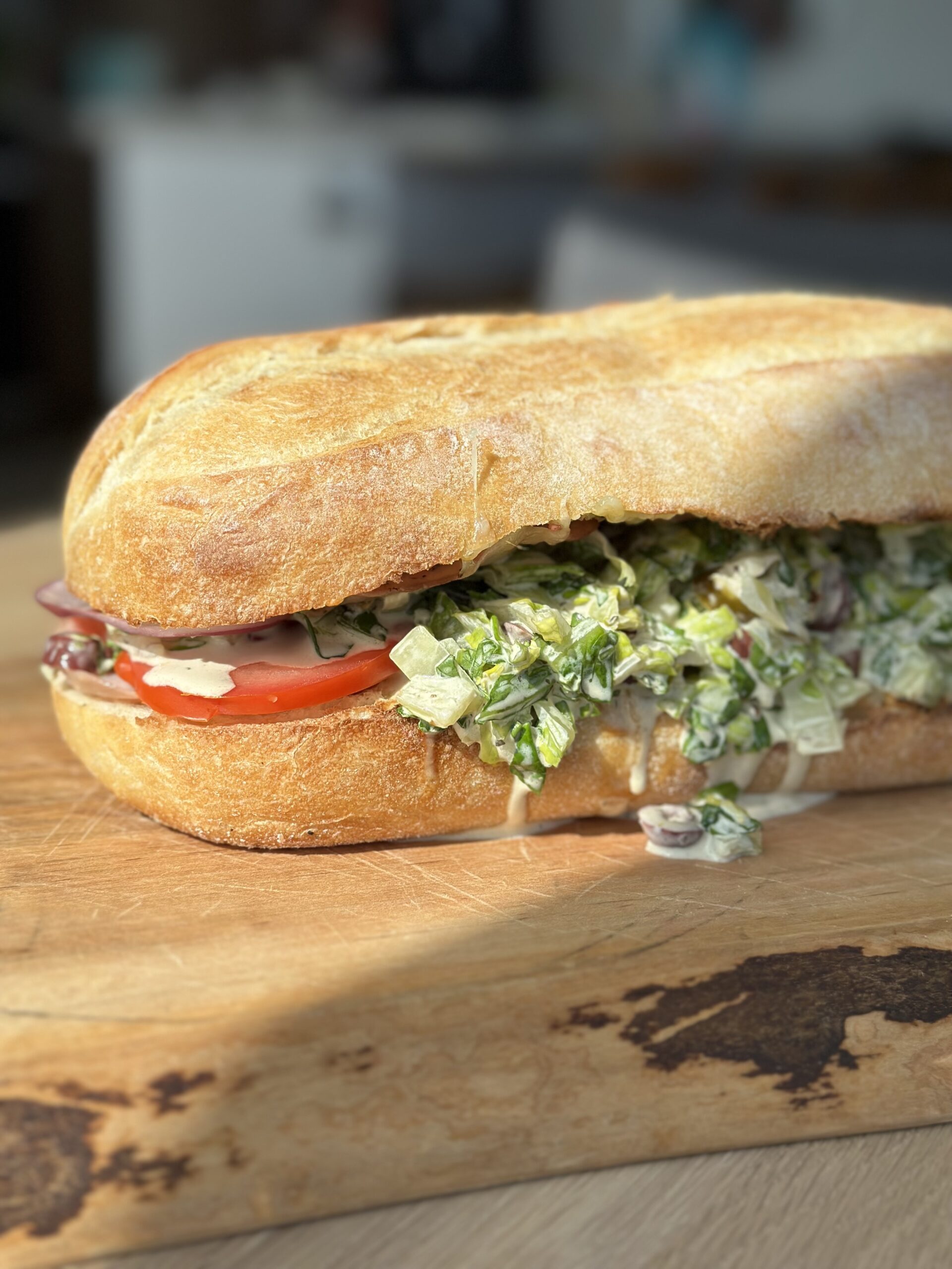 Fresh lettuce, tomatoes, onions, and pickles add crunch and brightness. A drizzle of Italian dressing or olive oil with vinegar ties it all together with a tangy finish. Season with salt, pepper, and Italian herbs for an authentic deli taste.