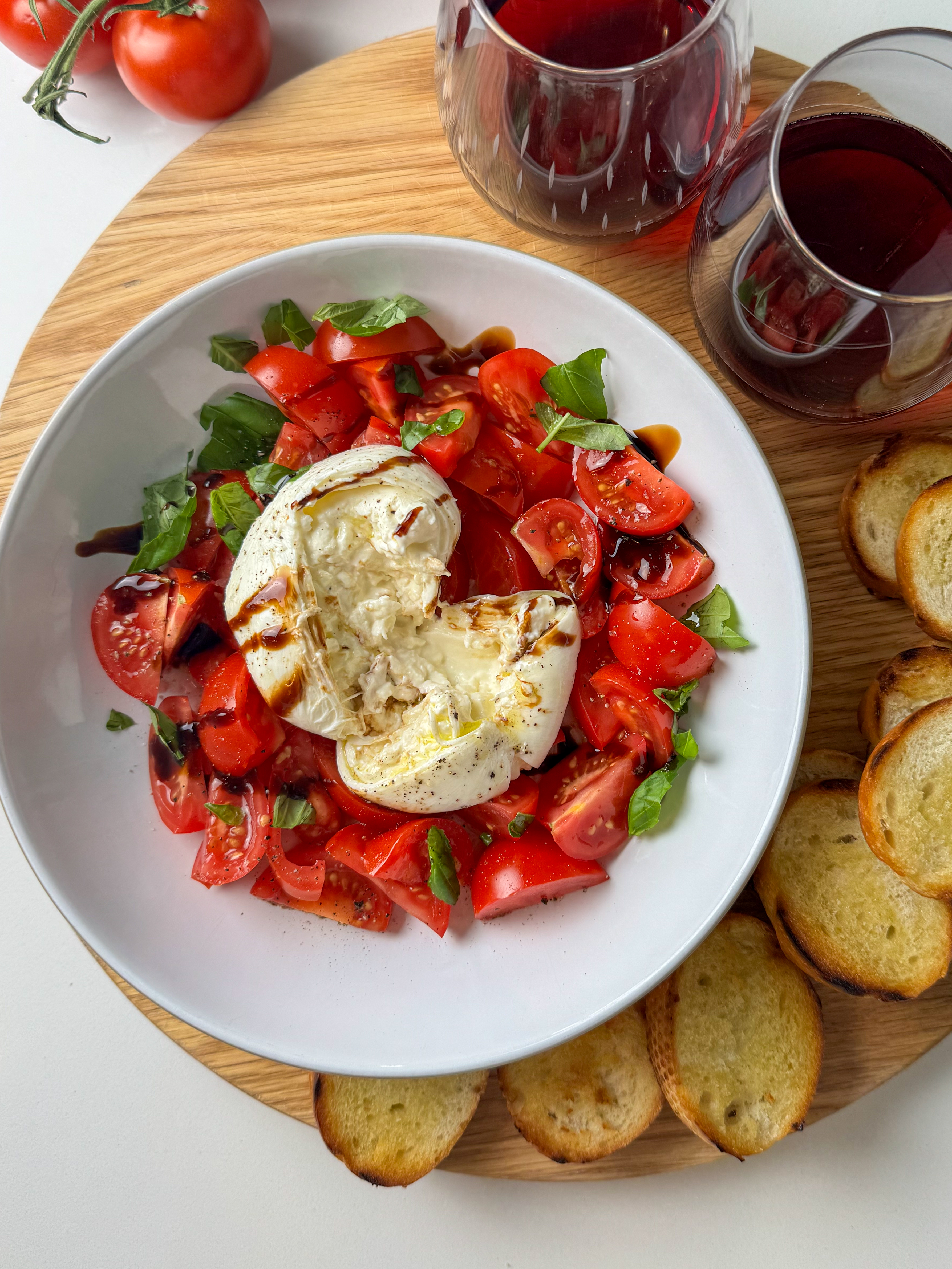 There’s something about burrata and tomatoes that feels romantic and nostalgic. It’s unfussy yet indulgent. It celebrates ingredients rather than hiding them. It reminds us that food doesn’t need to be complicated to be extraordinary.
