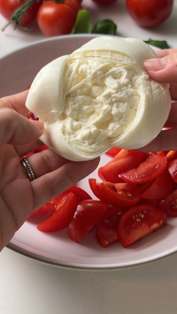 It’s milky, delicate, and buttery without being heavy. Pair that with ripe tomatoes and good olive oil, and you’ve got perfection.